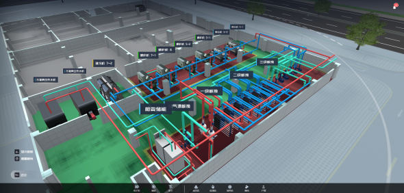 設(shè)計供熱能力48.1MW,制冷能力48.1MW,可實現(xiàn)供熱面積106萬平米,制冷面積106萬平米。項目主要是向科創(chuàng)城核心區(qū)提供采暖熱源、冷源及生活熱水。目前接入21個換熱站。