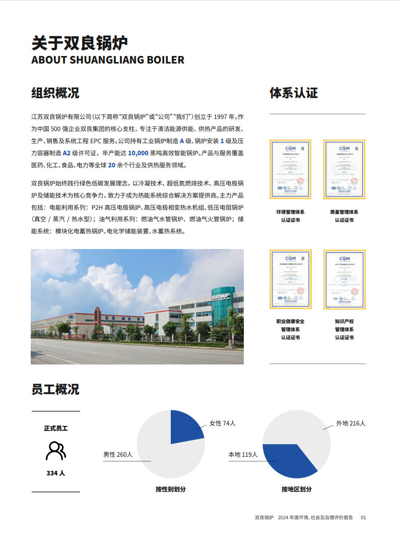 創建于1997年的江蘇雙良鍋爐有限公司,是雙良集團核心支柱產業,歷經20余年的持續創新,公司已成為行業內備受贊譽的清潔能源高效利用專家,產品遍布集中供暖、工業企業、民用供熱等多個領域。